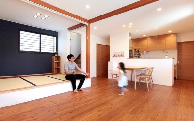 ウッドデッキのある和モダンな2世帯の家 個人住宅 竣工年月日:2016/9/5 所在地:前橋市岩神町 用途:専用住宅 敷地面積(㎡):464.4 延床面積(㎡):225.64 階数:2 構造:木造 設計監理:小林工業株式会社一級建築士事務所